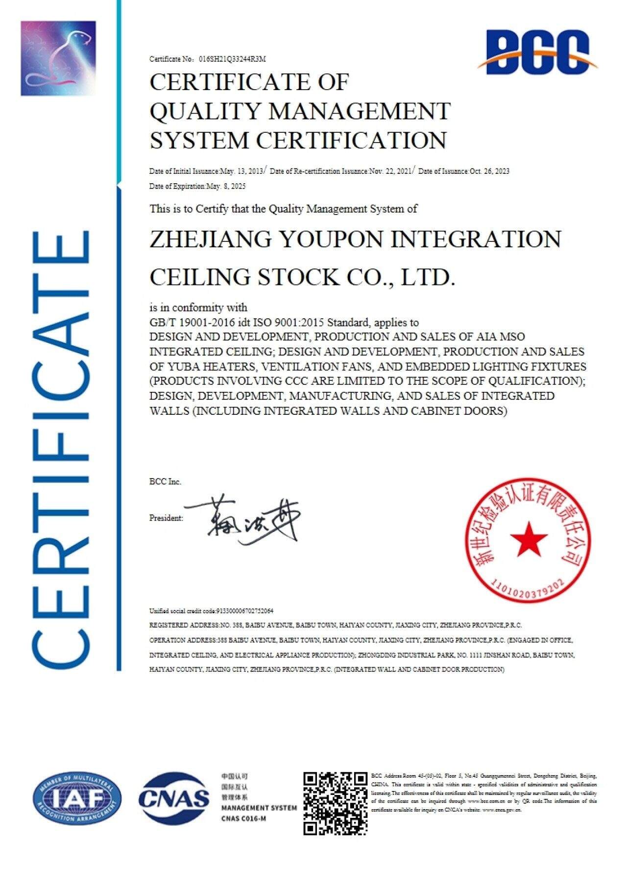 Zhejiang Youpon Integration Ceiling Stock Co., Ltd., the associated factory of Zhejiang Youbang Building Materials lmport And Export Co., Ltd. was established in 2 0 0 7 and is headquartered in Jiaxing, Zhejiang Province.Through its M S O Modular product system, the brand empowers consumers to transition from "fixed and unchanging" to "adaptive and evolving" living scenarios.Youbang specializes in integrated ceilings and versatile home systems, providing flexible, sustainable, and one- stop home solutions. Its product portfolio covers five core categories: modular integrated ceilings, wall- mounted systems, hooks, multi- functional cabinets, and 5 K wood wall panels. With a production facility spanning 148, 000 square meters equipped with fully automated imported production lines, Youpon possesses strong manufacturing capabilities. The company also maintains multiple C N A S nationally accredited laboratories. It has a workforce of 464 employees, including a 24 member R & D team, and operates a showroom of 5, 000 square meters. For 18 years, Youpon has adhered to the values of integrity, practicality, innovation, quality excellence. With a strong focus on R & D, the company holds 619 utility patents.