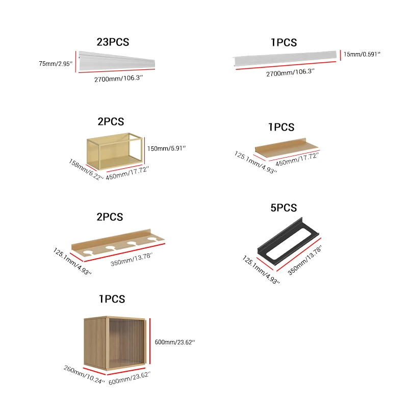 The lightweight nature of aluminum construction simplifies installation while reducing structural load on wall mounting systems. This characteristic enables installation on various wall types without requiring extensive structural reinforcement, expanding the potential applications for these decorative floating shelves. The aluminum surface accepts various finishing treatments, allowing for customization to match specific design requirements or branding needs.